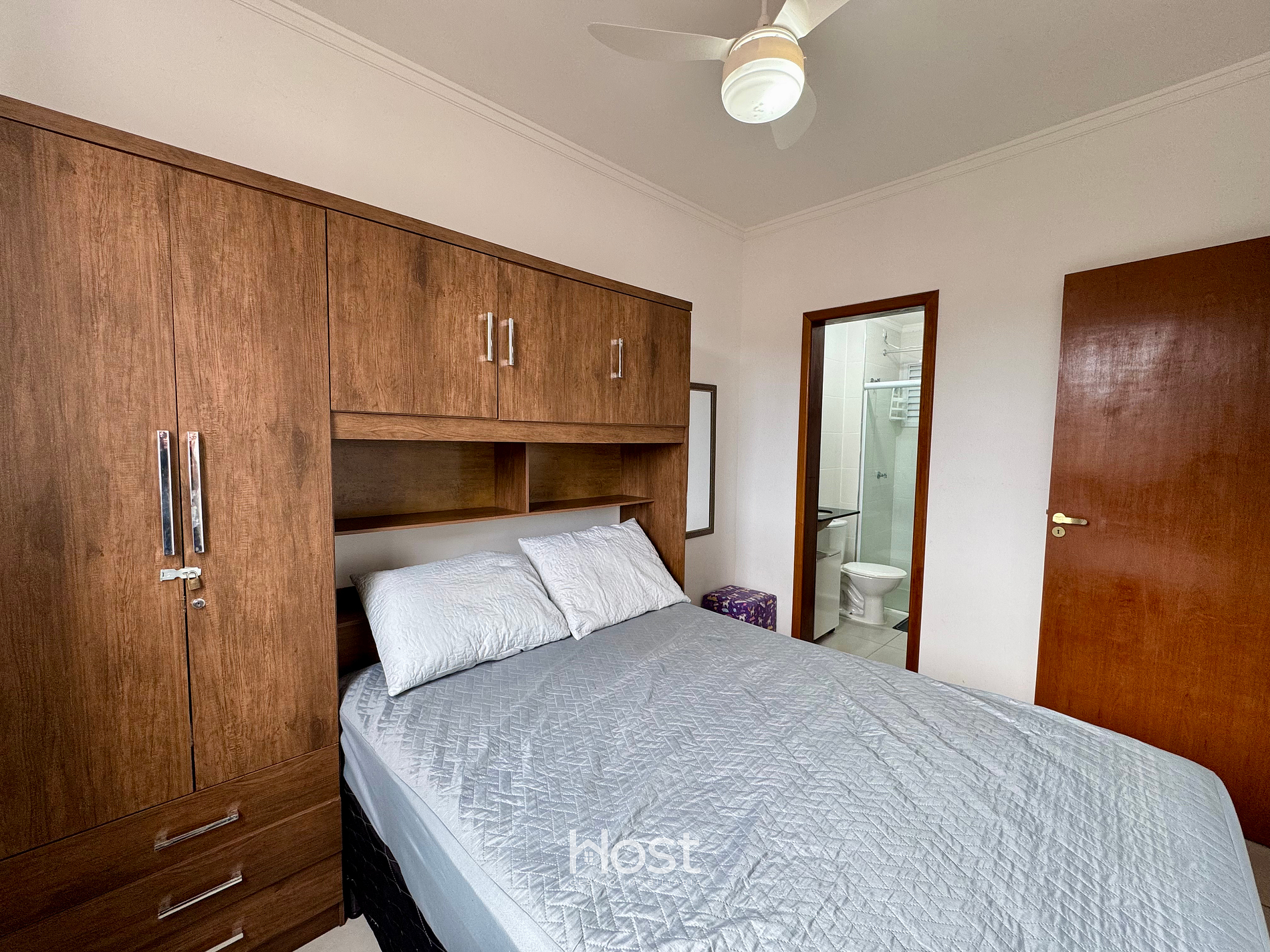 O apartamento conta com 01 suíte espaçosa, com ventilador de teto, guarda-roupas planejado e banheiro com box.