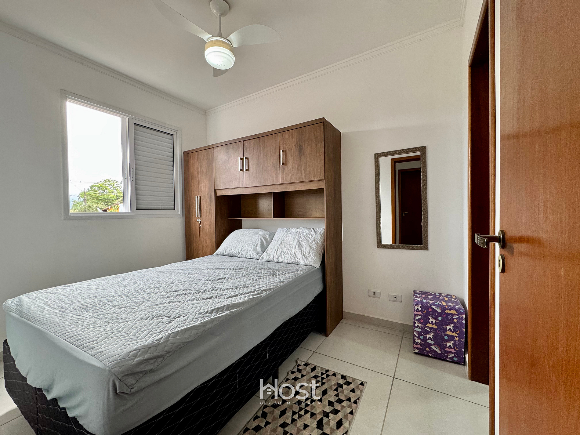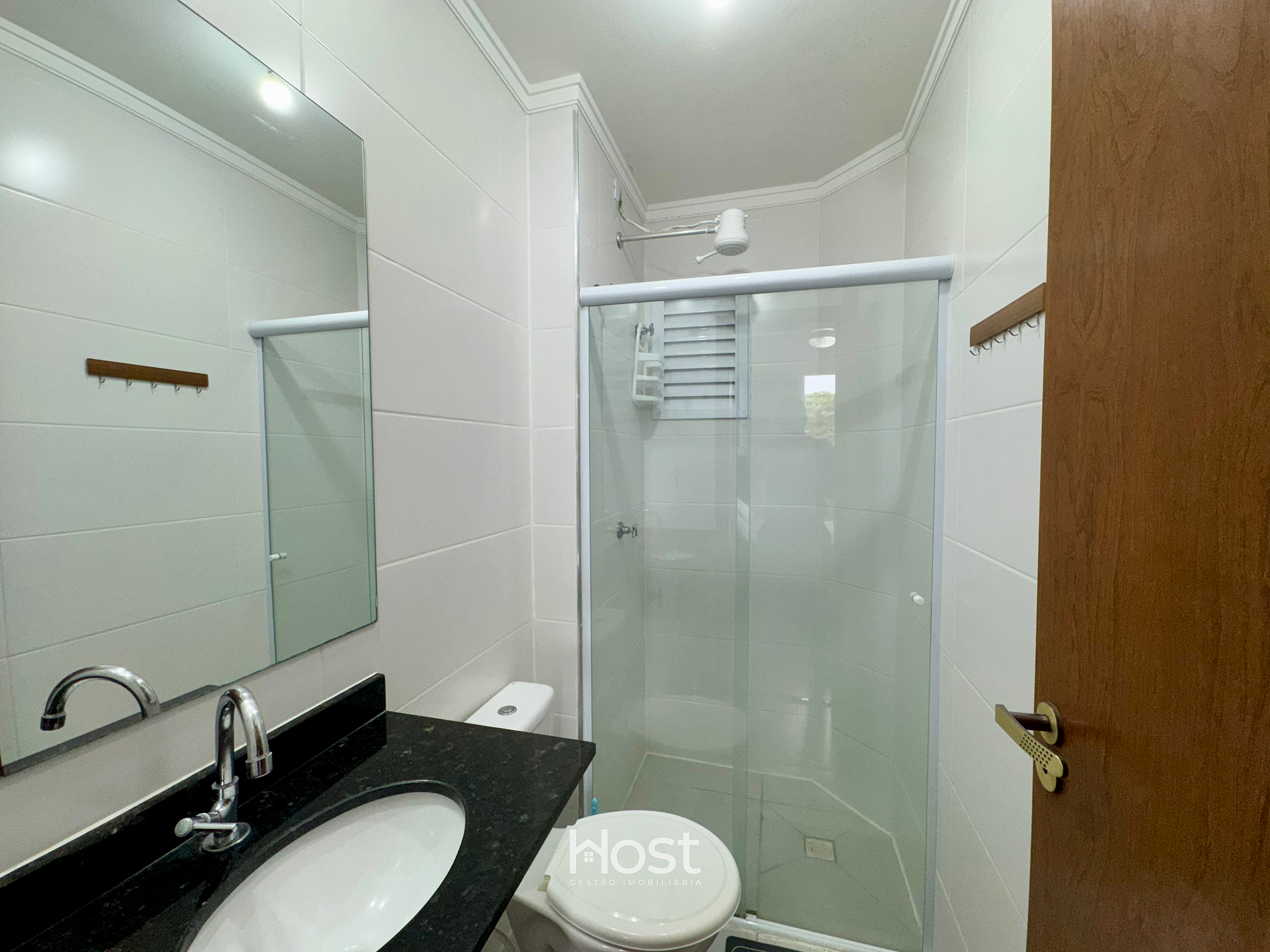 O apartamento conta com 01 suíte espaçosa, com ventilador de teto, guarda-roupas planejado e banheiro com box.