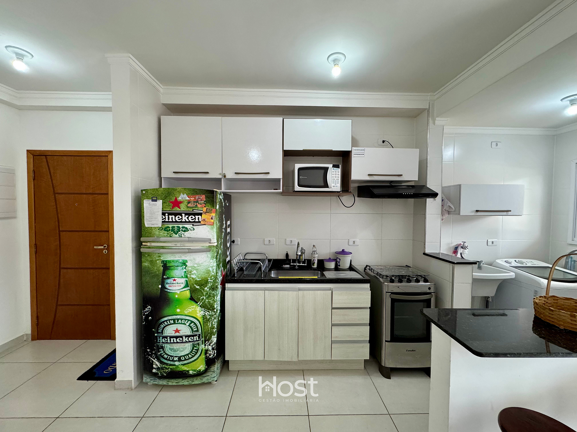 Possui cozinha completa, com os principais eletrodomésticos utilizados no dia a dia, integrada com a sala de TV e 01 mesas de jantar com 04 lugares e duas banquetas.